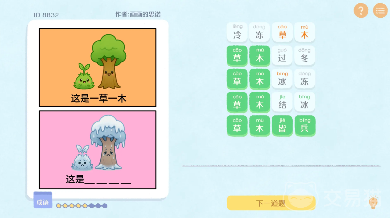 采用清新明快的2D手绘风格,界面简洁无干扰,视觉观感舒缓放松。每道题目均匹配定制化BGM,在碎片时间内即可完成一次轻量级沉浸式互动。特别加入短视频猜梗玩法,通过演员夸张演绎、镜头语言暗示等方式呈现当下热门网络表达,考验玩家对语境、语调与流行文化的即时反应能力。