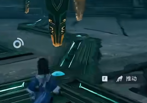 进入区域后,中央石台为整个谜题的基准点。环绕石台分布着若干可交互细长石柱,每根均可被角色推动位移。其核心判定逻辑在于空间对齐:当某根石柱被推至正确方位时,它与相邻石柱(或石台)之间会自动激活一道可见光束,即为成功定位的明确反馈。光束亮起即代表该柱已处于有效坐标,无需额外校准角度或距离。