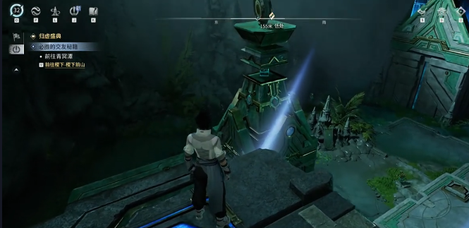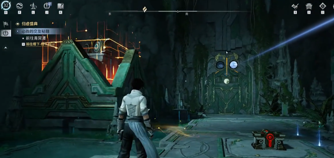 进入沧渊迷踪副本后,玩家将首先进入地下区域。眼前紧闭的石门即为第一道机关关卡。需先前往大门右侧的踏板机关踩踏一次,激活初始光路系统。注意:此时光线必须保持左右对称路径,否则后续反射无法生效,将导致解谜中断。完成右侧触发后,立即移步至大门左侧高耸石柱处,将其旋转调节至最高档位;随后从背包中取出冰冻果,瞄准前方河面投掷——冰面将在瞬间凝结成型,形成可通行的临时路径。