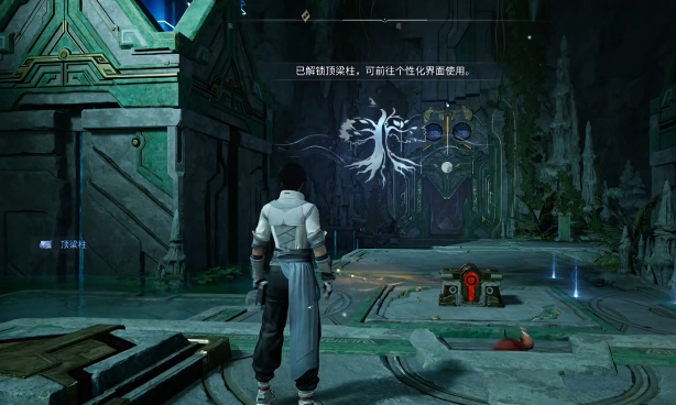 第二阶段谜题位于开启石门后的内侧空间。其核心机制围绕三处联动机关展开:首先抵达门后平台,定位第三处地面机关并踩踏,释放新一束定向光束;该光束需精确命中后方独立石柱顶部的接收端,从而激活第四处悬浮机关。待第四机关亮起后,角色需跃至石柱顶端,踩下其表面机关,静候光路自动完成二次对接。确认光线稳定连接后,返回地面,再次使用一枚冰冻果冻结当前河段,随后踩下邻近机关,即可完成全部光路协同与冰面协同操作,第二重封印随之解除。
