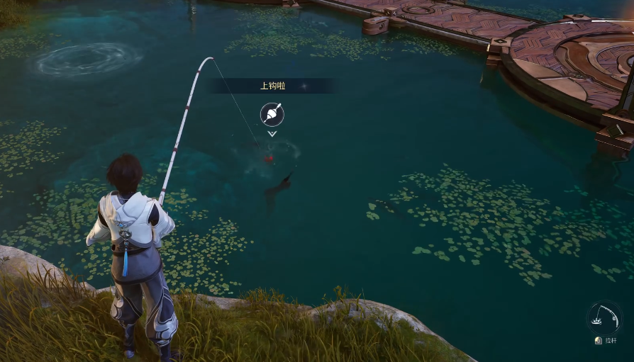 垂钓功能需通过剧情引导解锁:玩家需抵达霜云镇,在镇内临水区域找到NPC垂钓者并完成对话交互,即可激活该玩法。系统将自动发放基础鱼竿与鱼饵,无需额外采集或合成。操作时,玩家需面向水域按提示抛投鱼竿,鱼漂沉入水面即表示有目标鱼类靠近;当水波加剧、鱼影跃动明显时,及时提竿可大幅提升成功率。初期仅开放初级鱼竿,随进度推进,不同鱼种对装备类型、垂钓点位及环境条件提出差异化要求。每次抛竿固定消耗1点精力值。