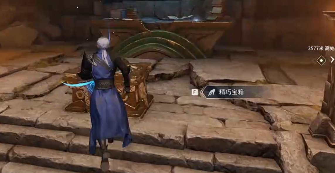 推荐行进路线如下:先进入赤隼馆副本,打开大地图定位传送点并传送至最近锚点;出传送后朝正南方向直线移动,依据导航游标指示,于127米低处定位洞口位置。进入遗迹内部后,首要操作是与场景中显眼的白色树枝交互——此为开启全部机关的必要前置步骤,不可跳过。