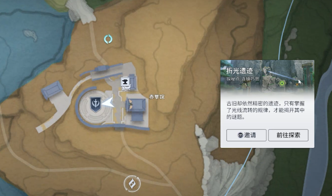 任务触发需满足地理位置条件:玩家须前往赤隼馆南侧的泽光遗迹探索点。此处无等级或战力限制,所有账号均可直接进入,无需前置养成准备。抵达后,系统将自动激活“折光遗迹探秘”事件,即为任务入口。