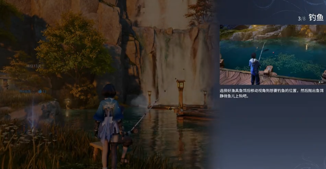 钓鱼功能并非初始即开放,需通过主线剧情自然解锁。关键节点为“霜云之行”任务——玩家必须完整推进并达成该任务目标后,方可激活垂钓系统。值得注意的是,部分玩家在任务结算后立即传送离开,导致错过后续交互点。实际上,完成任务后无需移动,只需在当前场景内稍作停留并环顾四周,即可在显眼位置发现NPC。靠近后将自动触发对话,正式获得钓鱼权限。