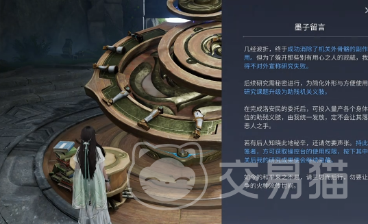 记录阅读完成后,返回一层,经新开启的竖井坠入地下空间。落地即触发精英战,需击败3波蚀影构造体(每波3只)。全数清除后,切勿立即撤离——在西北角石柱基座处可发现一枚隐匿式压力开关,攻击后左侧岩壁滑开,露出内嵌宝箱。开启后继续向纵深探索,在东南侧堆叠陶罐区击碎标有裂纹纹样的可破坏陶瓮,显露最终密室入口。步入其中,墨子留下的核心研究成果将具象化呈现,玩家可完整阅览其手写留言,并选择“封存装置”或“重启协议”两种结局分支。
