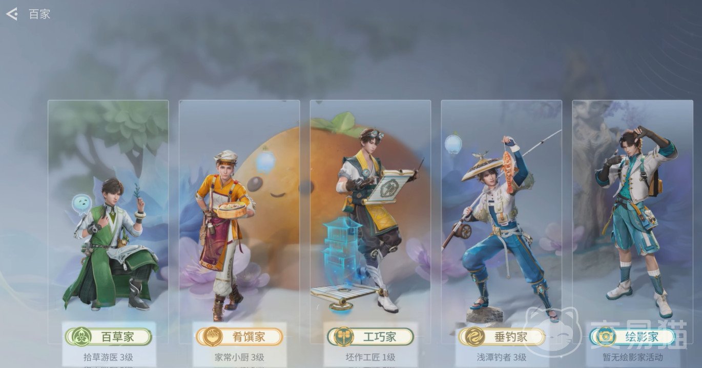 百家专属任务并非初始即开放,需先完成主线章节“神秘学舍”,方可正式进入个人专属家园。家园不仅是角色休憩之所,更是百家系统的核心承载场景。系统共设五大流派:百草家、肴馔家、工巧家、绘影家、垂钓家。每位玩家可依据兴趣选择主修方向,并通过对应行为积累专精经验,逐步提升流派等级。