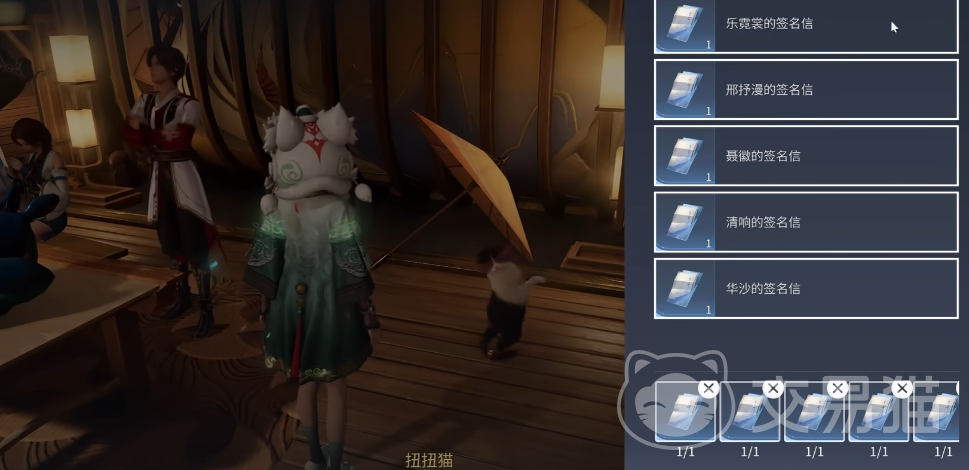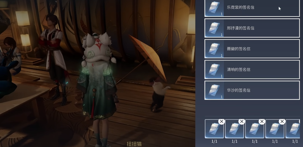 第五封信位于界北云根旅馆内部,进入后切换东南视角,定位正在演奏的NPC乐霓裳,完成交互即获最后一封签名信。