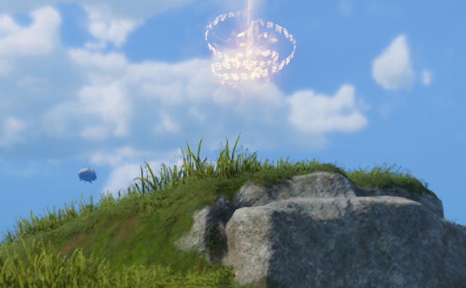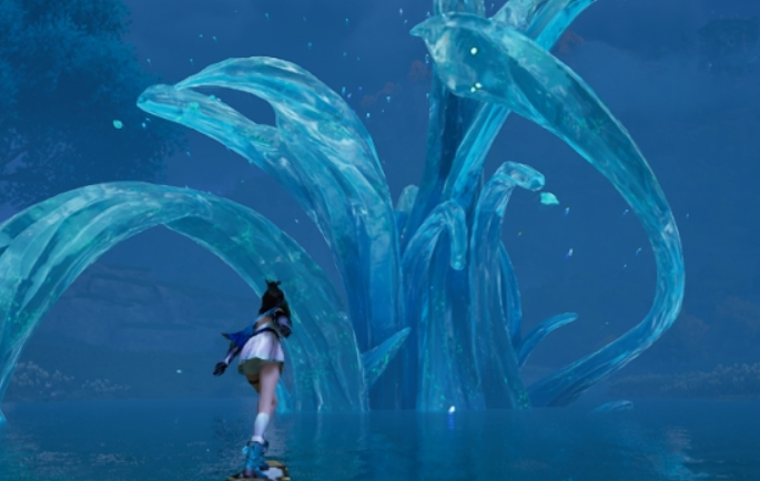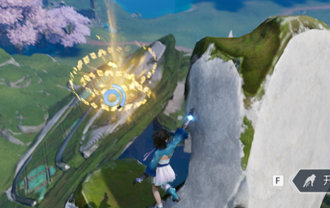 第三枚位于篱遁丘渡石,目标为巨木篱背部显眼的黄色闪光点,攀爬后直接拾取;第四枚设于两块对峙巨石之间,需以锁钩登顶并完成空中飞跃动作,精准靠近闪光点完成收集;第五枚坐落于西云落高地渡石的峰顶平台,为最高可视点位;随后传送至无名雕像渡石,目标道具即置于雕像掌心;最后一枚则固定刷新于春潭湿地渡石的蓝色立柱表面,特征鲜明,易于定位。