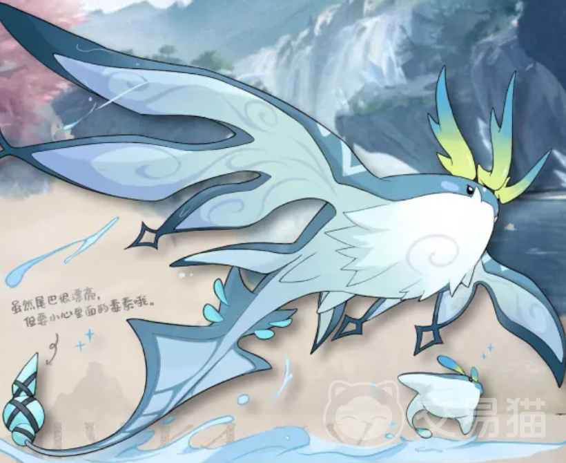 星鳐属于鳞形异生鱼类,初始栖息于水域,元素属性为水。幼体阶段完全依赖水环境生存;成长至成熟期后,具备稳定持续的空中飞行能力。其尾部嵌有高纯度结晶结构,在光照下呈现宝石级折射效果,该结晶不仅是外观亮点,更是驱动其水系魔法的核心能量源。性格温顺亲和,完成星结契约后会主动跟随玩家行动,但处于高度兴奋或应激状态时,可能无意识释放微量毒素,建议互动时保持适度距离与节奏控制。