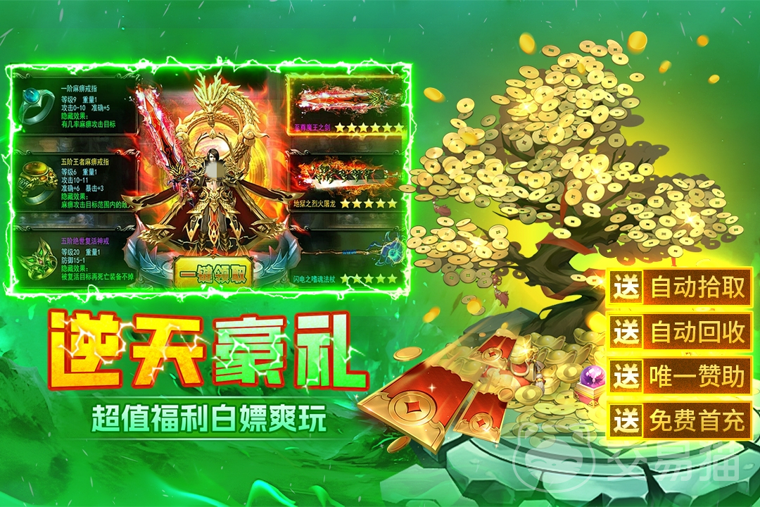 游戏采用单职业架构,角色创建后无需纠结职业选择,战法道三系技能可随时免费切换,大幅降低入门门槛。开局即赠赞助会员权限、自动拾取、自动回收功能及半月弯刀技能,显著提升前期资源获取效率与战斗流畅度。