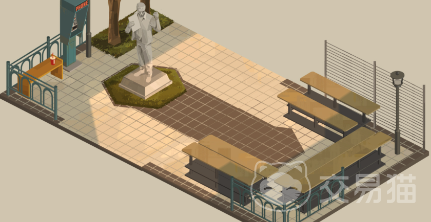 视听语言是本作另一大亮点。开发团队选用低饱和复古色调搭配干净利落的矢量线条,配合环境音效与分时段动态配乐,构筑出兼具真实感与朦胧诗意的西区空间。玩家可搭乘老式电车穿行于街区之间,观察晨光中的市井喧闹、午后小巷的慵懒光影、入夜后霓虹微闪的静谧街道——时间流动本身即成为叙事的一部分。