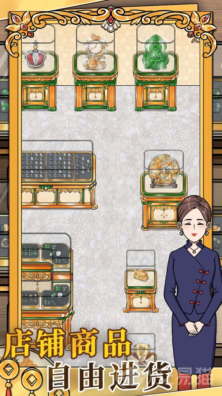 游戏设定在玩家继承家族珠宝生意的背景下展开:大学毕业后,长辈出资开设一家全新金店,由你全权负责日常运营。从基础装修、柜台扩容、货品陈列,到员工招聘、橱窗优化、金价浮动应对,每个环节都需自主决策。店内可上架多种金饰商品,吸引不同消费偏好的顾客进店选购。