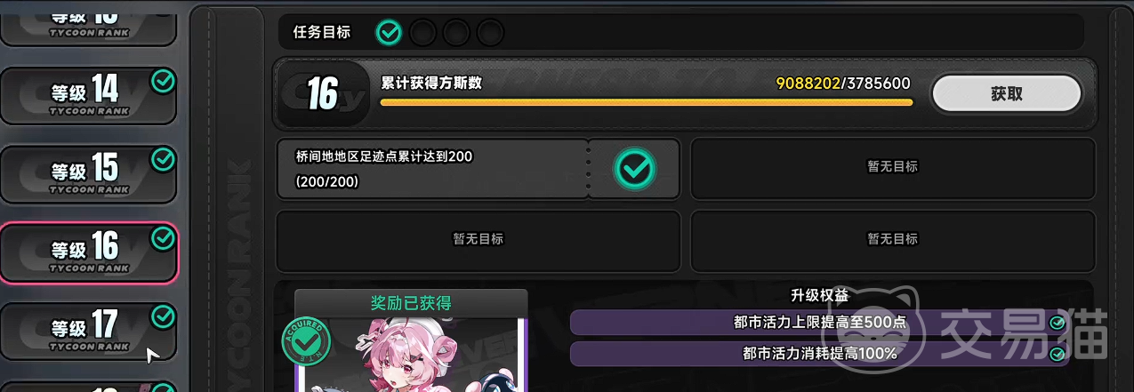 值得注意的是,等级跃迁存在关键分水岭:16级为重要效率拐点。突破该等级后,方斯基础产出将获得倍率加成,整体资源转化效率实现质变。而达成16级门槛的操作难度较低——仅需在城市内完成基础载具配置(如购置3台以上不同型号载具)并收购若干初始房产即可满足全部前置条件,适合集中资源快速突破。