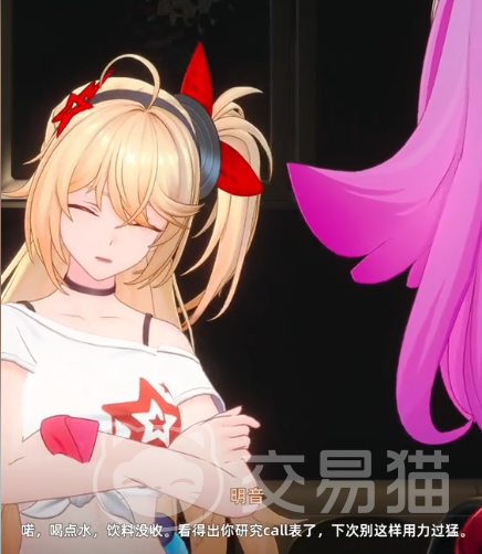 日常状态下,明音是城市一角静谧咖啡馆的前台店员。言行克制、语调平缓,习惯保持恰到好处的社交距离,极少主动表露情绪。这种沉静气质与舞台上的她形成强烈对比——当电吉他入手、灯光亮起,她瞬间化身节奏主宰者:肢体律动精准有力,眼神锐利炽烈,所有压抑已久的表达欲与生命力借由音浪倾泻而出。这种“静如止水,动若惊雷”的反差塑造,使角色具备高度记忆点与情感纵深感。