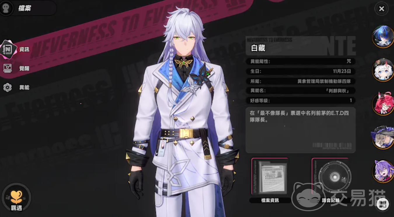 白藏作为异象管理局E.T.D四队队长,是专注高爆发与仪式化战斗体系的咒异能代表。其攻击可叠加三种独立标记:“祝”(普攻命中三次触发)、“噤”(闪避反击触发)、“詈”(特殊普攻衔接技能触发)。当开启极轨终结技所展开的领域后,不同标记组合将激活差异化爆发逻辑。尤为突出的是斩杀机制:领域内,普通敌人生命值低于10%、BOSS类单位生命值低于5%时,可直接触发即死效果,大幅提升清场效率与战斗爽感。
