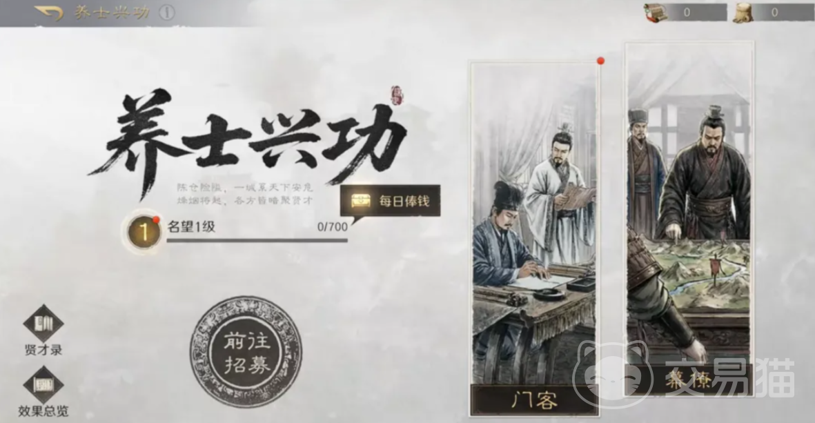 “养土兴功”由两大模块构成:门客系统聚焦城建发展,通过任命文职贤才提升资源产出、建筑效率及内政稳定性;幕僚系统则侧重战场适配,为出征武将赋予兵种转换、战法强化或属性增益等定向能力。二者协同运作,形成“稳根基—强战力”的闭环成长体系。