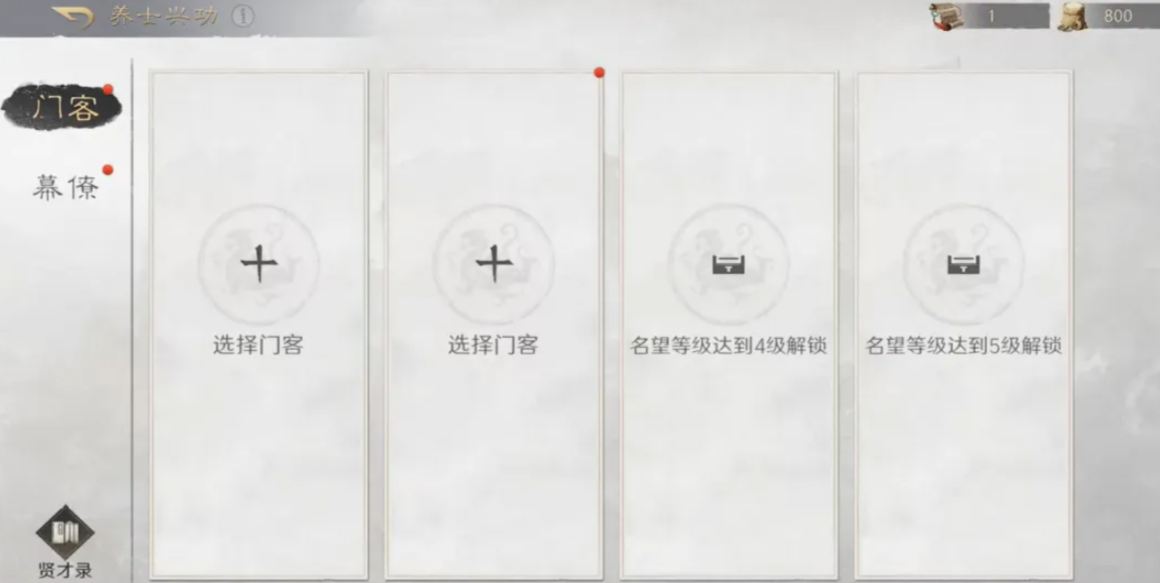 门客槽位随名望等级逐步解锁,初始可配置多个独立栏位。每位门客上任后自动进入24小时绑定周期,期间不可更换、卸任或重复任命;若已存在同名低品质门客且尚未激活效果,则允许直接替换为同名高品质门客,跳过冷却限制。需注意:同一名称门客仅能生效一位,不支持多阶叠加。