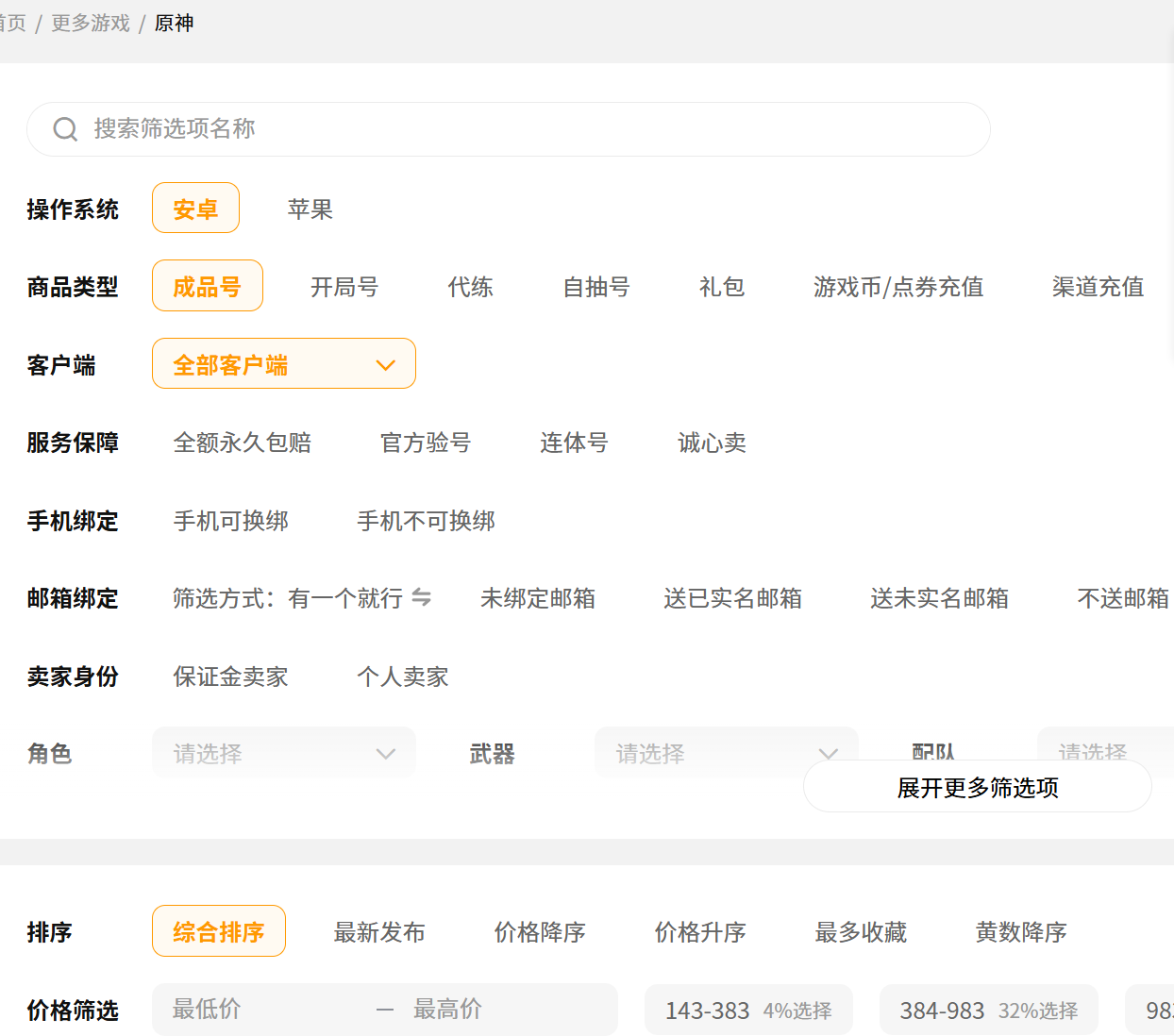 而且交易猫的原神专区有非常多种类的账号,从初始自抽号到满配的顶级账号,各种服务器、各种配置的都可以找到。你也可以根据自己的要求来进行精细的筛选。每一个带有官方验号标识的商品都是有全量核验的,全部真实信息都可以一眼看到,避免买到货不对板的账号。