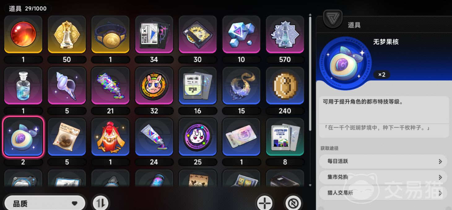 第三,猎人交易所。此功能需都市大亨等级达到12级方可解锁,属高阶经营玩法模块。交易所支持多品类道具挂单交易,无梦果核在此系统中流通量大、成交率高,是集中获取该资源的核心后期途径。