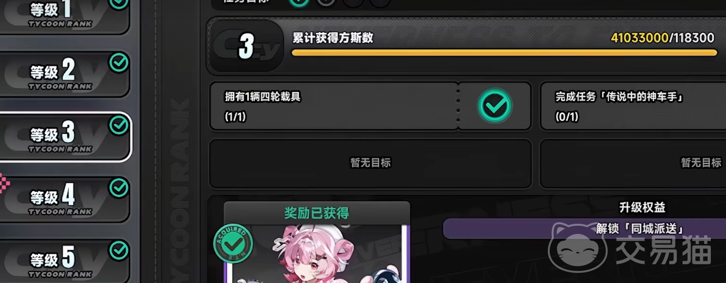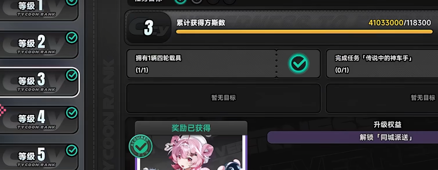 “大亨等级”是驱动都市系统进化的关键指标。在都市主界面点击“升级”即可进入等级面板。该等级通过完成委托任务、消耗都市活力、购置公寓、发起角色邀约、累积方斯持有量等多种行为获得经验提升。未解锁等级对应的任务条目暂不可见,但每次升级均会固定发放养成材料、环石或猎人等级经验作为奖励。