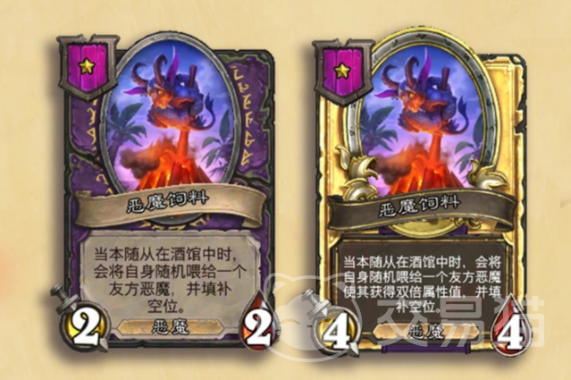 恶魔种族迎来全新关键词——“饲料”。具备该标识的随从将独立存在于特殊随从池中。当酒馆刷新出饲料随从时,若场上存在处于“饥饿”状态的恶魔随从,便会立即触发吞噬效果:被吞噬的饲料随从属性(包括攻击力、生命值、圣盾、嘲讽等全部数值)将完整转移至该恶魔身上,同时酒馆对应位置重新生成新随从。此机制显著提升恶魔流派前期成长效率,但需注意饲料随从一旦被消耗即永久消失,合理规划刷新节奏与核心恶魔站位尤为关键。