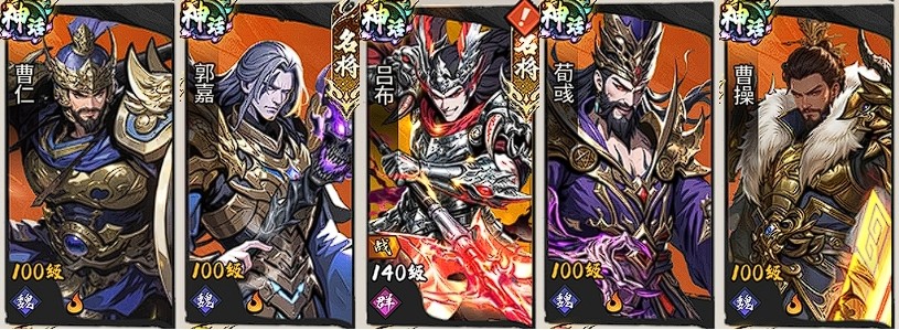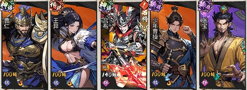 战术逻辑:构建“前排双坦+双功能辅助+核心爆发”的成熟闭环。曹仁负责突进承伤与护盾覆盖,曹操协同压缩阵型并施加击退与附伤,增强前排持续作战能力;郭嘉提供群体控制与怒气回复,荀彧赋予全队行动加速与召唤单位支援,二者共同优化技能循环节奏;吕布作为终极输出单元,承接全部增益效果后释放高额群伤,达成快速清场目标。整套体系控制链完整、技能衔接紧密、输出环境优越,兼顾PVE推图与PVP对抗需求。