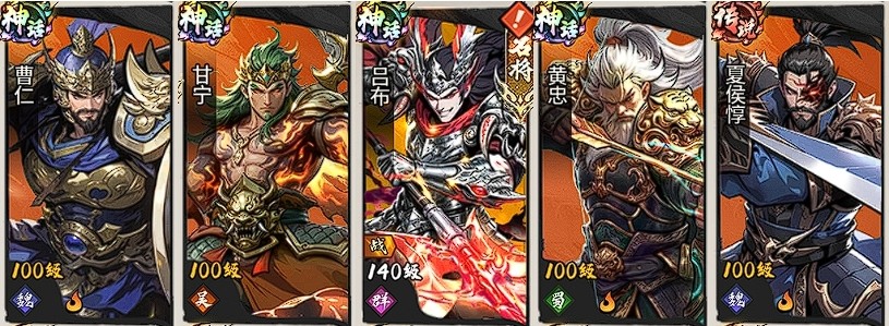 阵容构成:曹仁 + 甘宁 + 吕布 + 黄忠 + 夏侯惇
