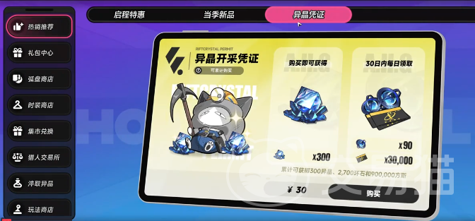 基础档位为30元小月卡,提供300异晶与2700环石。其中环石是核心抽卡货币,不可替代;异晶则可用于兑换限定时装等外观资源。进阶选择为68元猎人通行证——该档位明确包含“猎人奖励”,内含专属月卡武器、680环石、多组抽卡券、体力药水及角色养成材料。相较单独购置同类资源礼包,此通行证综合成本更低,推荐中轻度付费玩家优先考虑。另有128元高阶通行证,但当前版本仅附赠头像框与限量道具,资源转化效率偏低,暂不建议直接入手。