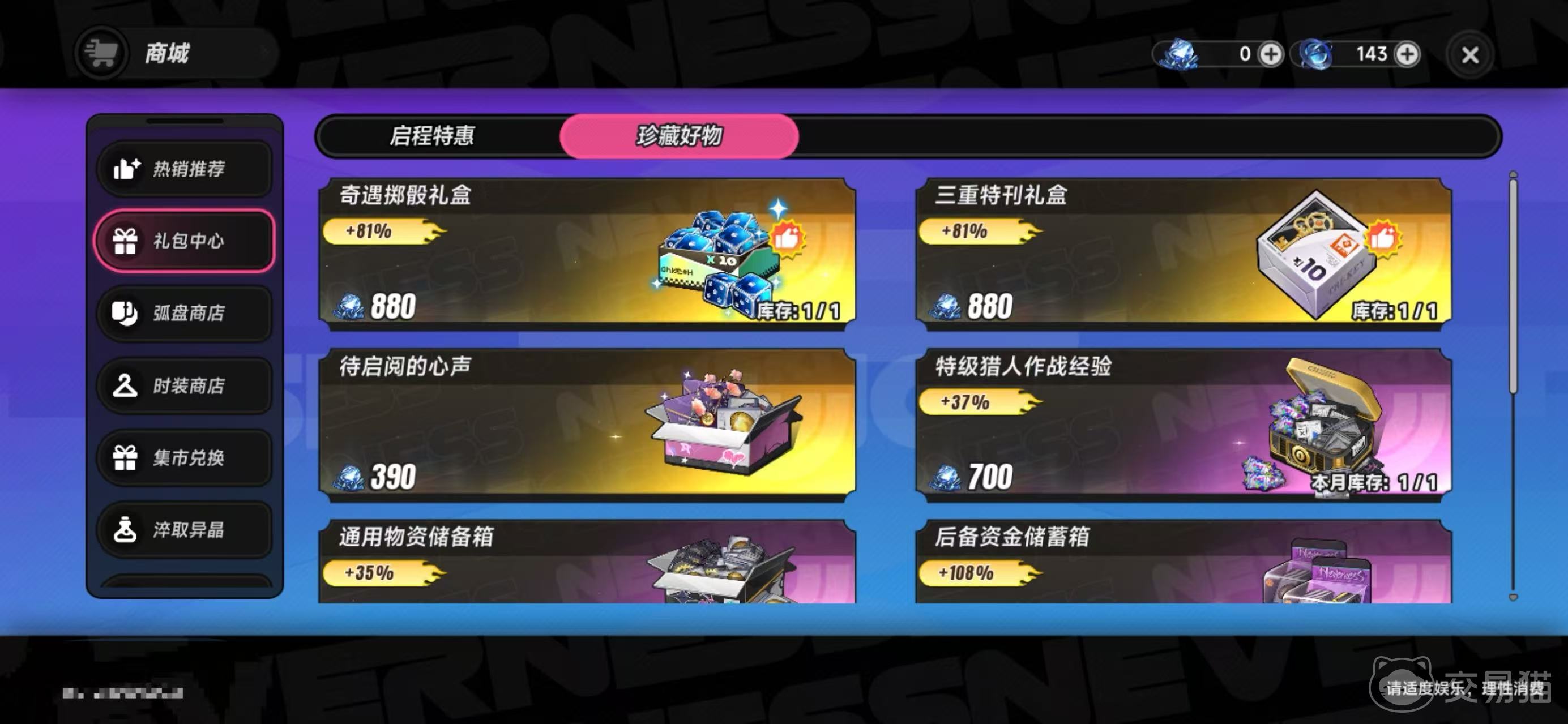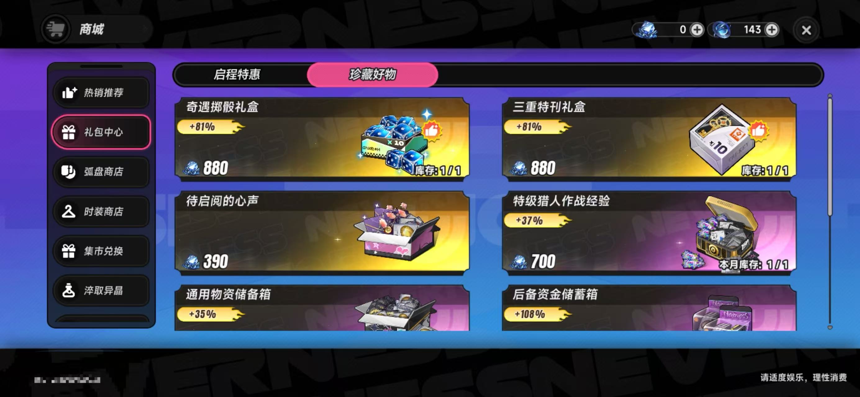 在《异环》中高效成长,离不开对核心养成资源的科学规划。其中,“珍藏好物”作为商城内重点运营的限时礼包板块,是玩家快速积累关键道具、缩短养成周期的重要途径。该板块位于游戏主界面右上角【商城】→【礼包中心】二级菜单中,位列第二项,位置固定且入口明确。