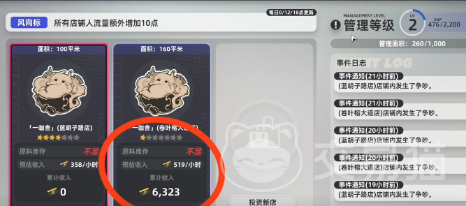 每位雇员拥有独立的管理技能与经营技能,两项能力随等级提升可同步增强店铺收益效率并压缩运营成本。商品上架与库存调控是维持日常运转的关键动作,5级商铺支持同时陈列三种商品;商品类型支持灵活切换,适配不同阶段的发展策略。所有已上架商品均可进行升级操作,升级后将直接提升单位时间产出收益。需特别注意的是,原材料库存会随经营持续消耗,及时补货是保障稳定营收的前提条件。