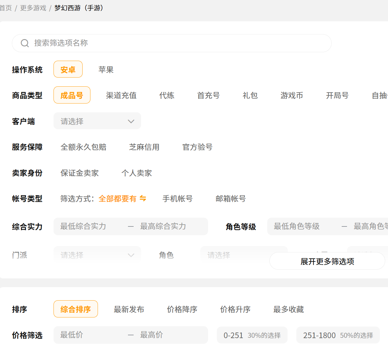 交易猫针对梦幻西游游戏有专属的交易专区,账号资源非常的丰富,全面覆盖梦幻西游的手游和端游,不管是什么品类什么特点的账号都应有尽有。平台设置了精细化的筛选功能,玩家可以直接按照等级、门派、服务器等条件进行精准的查找,就不用再盲目翻找了,分分钟就能找到符合自己预算和需求的账号,每一个账号还都有详细的信息展示和截图,方便买家随时查看账号详情。