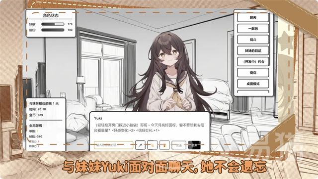 在叙事向生活模拟游戏《妹居物语》中,陪伴感是贯穿全程的核心体验。玩家将与名为Yuki的妹妹共同开启同居生活,在真实节奏的日常互动中逐步建立情感联结。游戏采用动态事件系统,所有关键节点均依据玩家实时选择即时演算,每一次对话、每次行动都会影响Yuki的性格倾向、信任数值及人生路径走向。