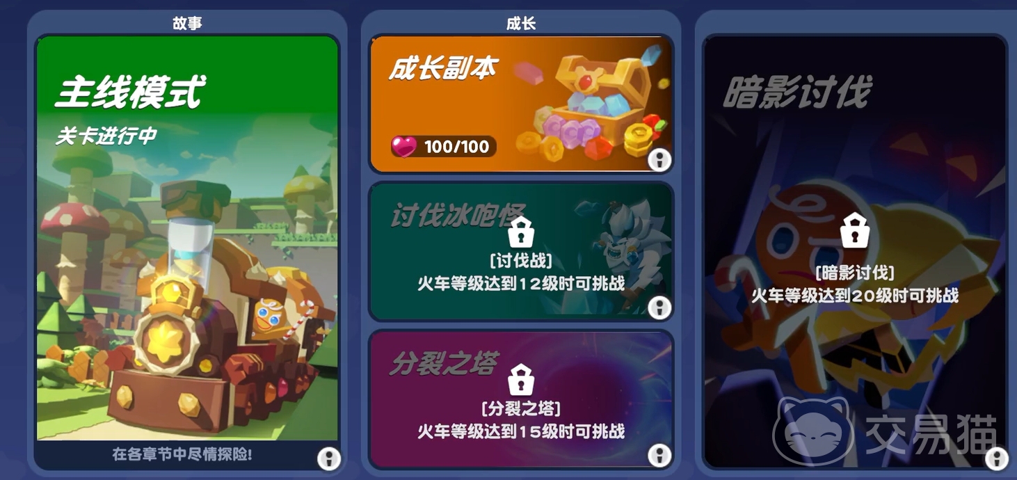 随着故事模式进度推进,玩家可提升火车星级,逐步解锁挑战副本、养成系统及协作玩法。专属养成副本提供角色成长所需素材,助力饼干人强化属性与技能等级。