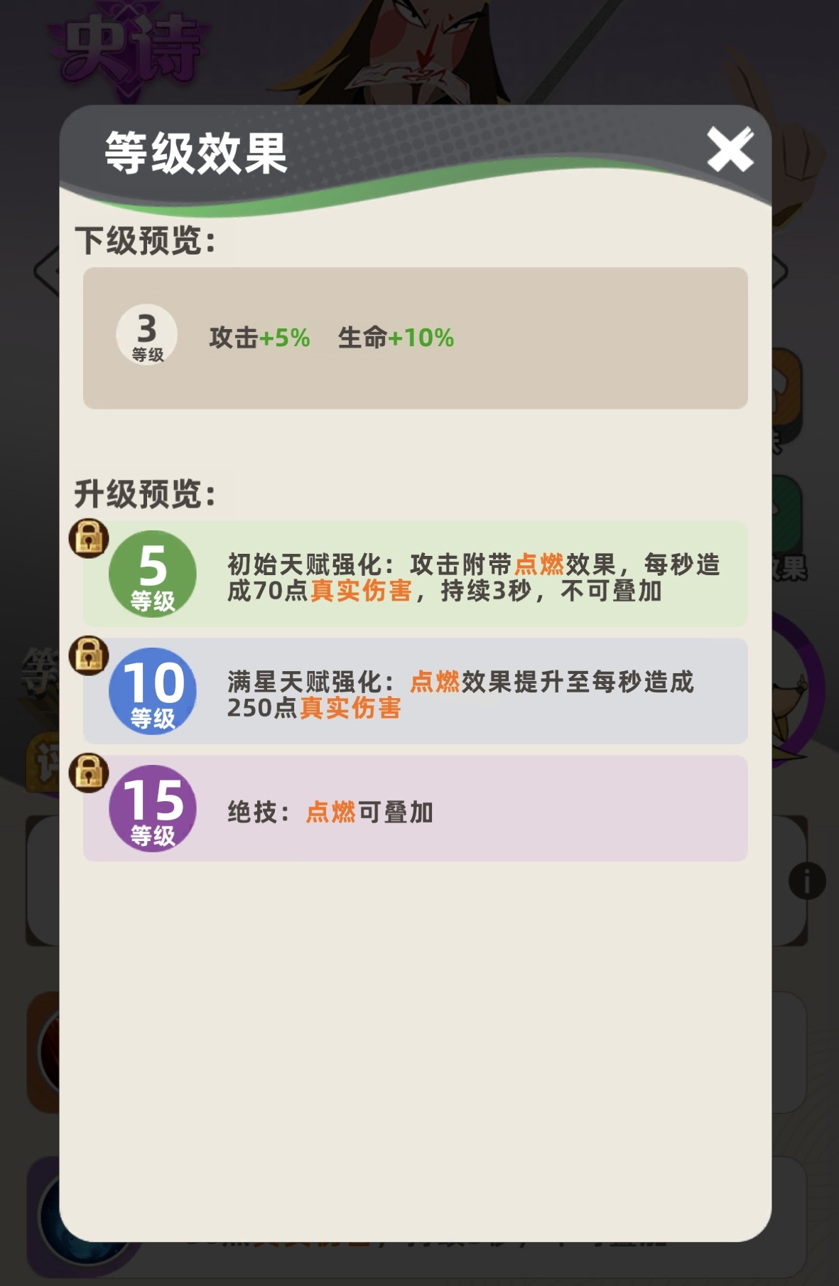 张宝的核心机制为“持续点燃”——每次普攻可对目标施加一层点燃状态,每层独立造成真实伤害,且该效果随技能等级提升而增强;升至满级后,点燃层数可叠加,多层持续触发下,单体输出效率显著跃升。这一特性使其成为中后期持久战中的稳定伤害源,尤其适配高频率攻击或增益型队友配合的体系。