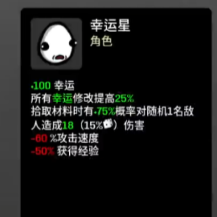 关于护身符与紫装的获取,二者均属常规掉落范畴。护身符在Boss战、宝箱或商店均有稳定产出;紫色品质道具则常见于中后期商店刷新、精英怪掉落及部分隐藏房间。若某局未遇齐所需物品,建议多进行两至三局尝试,通过局内随机性自然覆盖需求。解锁后,幸运星的基础幸运值固定为100点,由此带来两项核心效果:所有幸运类加成提升25%;每次拾取材料时,有75%概率对一名随机敌方单位造成伤害,显著强化清场效率与资源循环节奏。