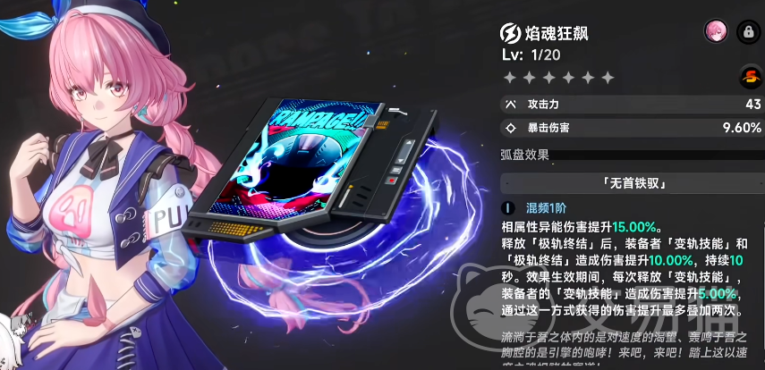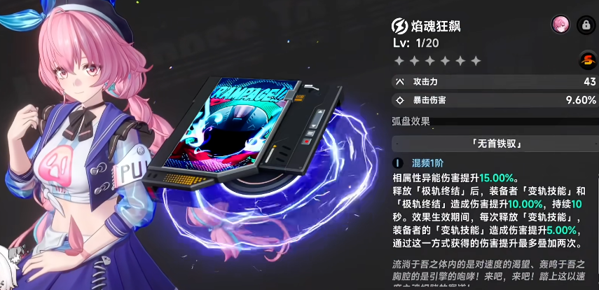 支持等离子武器盘的角色包括:限定卡池中的莉莉娜、常驻卡池中的哈索尔,以及四星卡池中的海月。选定任一符合条件的角色后,需为其装配专属技能模块“焰魂狂飙”——该模块仅限等离子属性角色装备,无法跨属性使用。装配完成后,再次由该角色驾驶摩托车,即可正式启用“鬼火”动态特效。