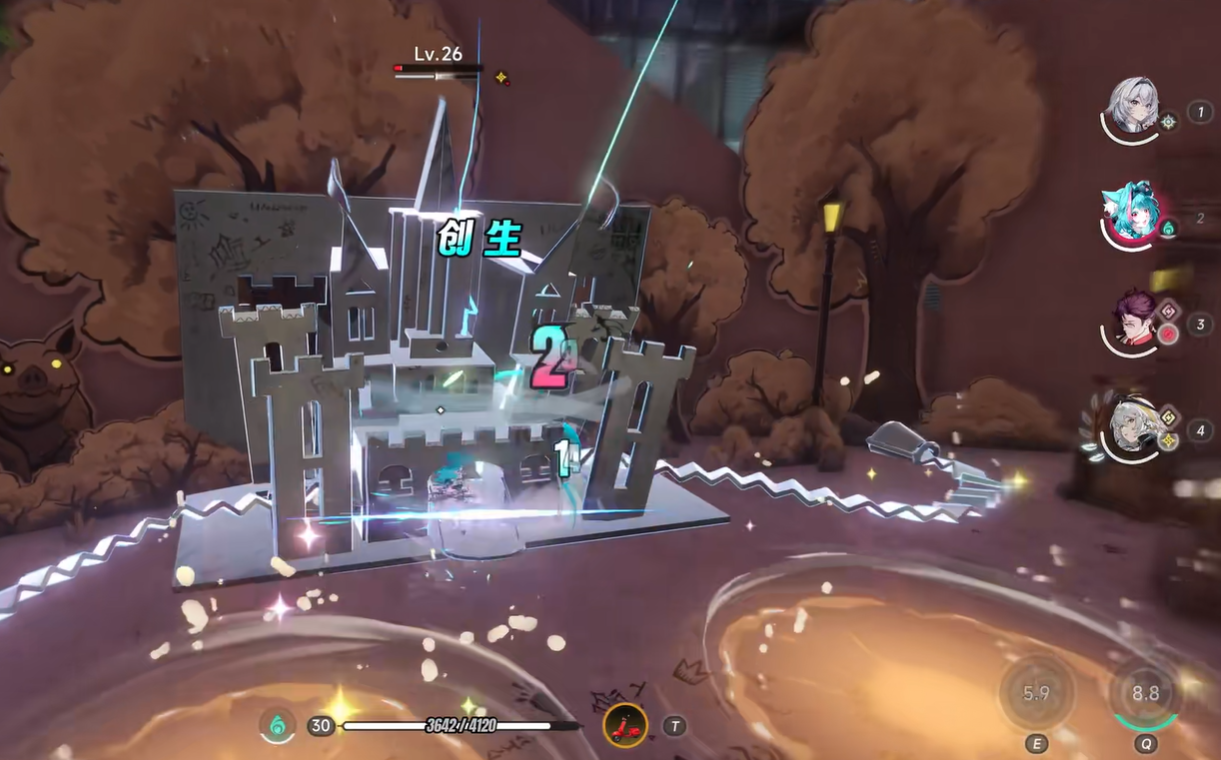 第二阶段,BOSS周身生成章鱼触须进行横扫,同时伸出双纸手分别攻击左右两侧。推荐站位保持于正中区域,专注输出;待第三段连击启动时,迅速移至任意一侧规避。血量降至50%后,将随机投掷延迟引爆型炸弹,可选择承受单次伤害(需确保护盾充足)或使用大招位移脱离爆炸范围。韧性条清空瞬间,立即切换角色释放援护技,并依次激活全员终极技能,形成连贯爆发链。通常三至四轮技能循环后即可压低其血线,最后补足普攻完成终结,同步获取经验值、甲硬币及其他通关奖励。