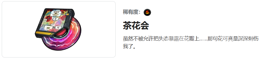 【茶花会】为系念型角色专属弧盘。机制围绕“主动降血”构建:在未受伤害状态下,角色可自主削减生命值,每触发一次即获得持续5秒、16%暴击伤害加成,最多叠加4层(总计64%)。同时解锁特殊技能“调弧静默庭园”。该弧盘要求角色具备可控的生命消耗手段,适用于高爆发自损流配队,强调短时间内的极限伤害转化。