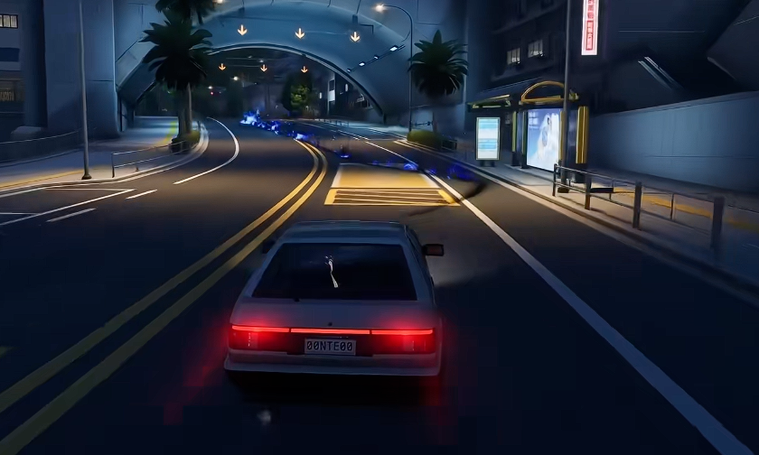 任务触发点位于地图中的半角街区域。玩家需将游戏内时间手动调整至夜晚时段,随后驾驶当前载具驶入该区域附近的隧道入口。此时,一道飘忽不定的蓝色火焰将从车旁掠过——这正是任务启动的关键信号。跟随火焰轨迹进入隧道后,场景将逐步进入虚幻状态,隧道尽头浮现一道泛着微光的蓝色屏障,穿过即可正式进入挑战环节。