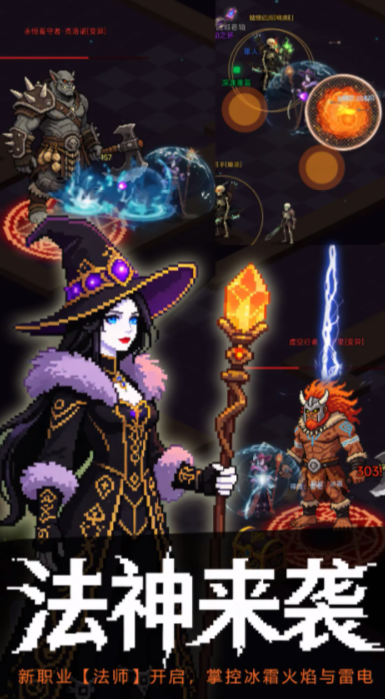 《深渊秘境》是一款以像素美学重构暗黑地牢体验的竖屏RPG手游。游戏构建了一个层次分明的地下城世界,玩家将扮演冒险者,逐层深入幽邃迷宫,在昏暗甬道中直面成群魔物与守关巨兽。每层场景均随机生成小怪分布与宝箱位置,强调探索感与即时反馈——靠近宝箱即可开启,内含装备、材料或稀有道具,支持即装即用或存入背包待后续交易。