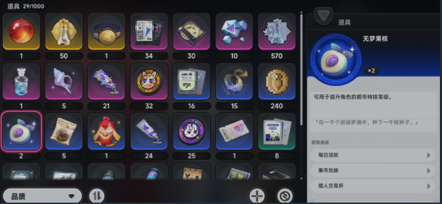 稳定获取异环无梦果核,并非依赖重复刷图。当前版本提供三条高效路径:其一为每日活跃度任务,属于零门槛基础渠道。仅需满足指定在线时长并完成常规日常目标,即可在活跃度面板直接领取固定数量的果核;其二为日常养成同步产出机制,无需额外操作,且能一并积累其他都市经营所需材料,适合长期持续投入,单日耗时仅需数分钟,资源供给稳定可靠。