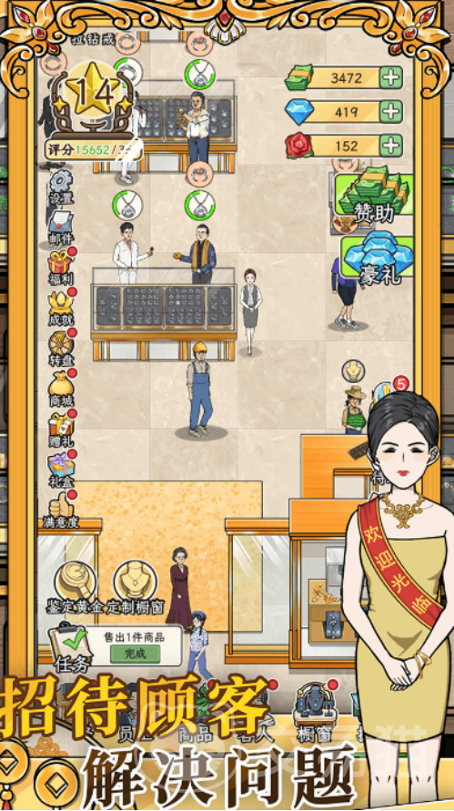 进入游戏后,玩家将接手一家初始规模较小的金店,需通过优化空间布局、升级展柜设施、扩充黄金与宝石品类等方式提升店面承载力与吸引力。随着经营进度推进,更多经典款与限量款珠宝将逐步解锁,满足不同消费层级顾客的选购需求。