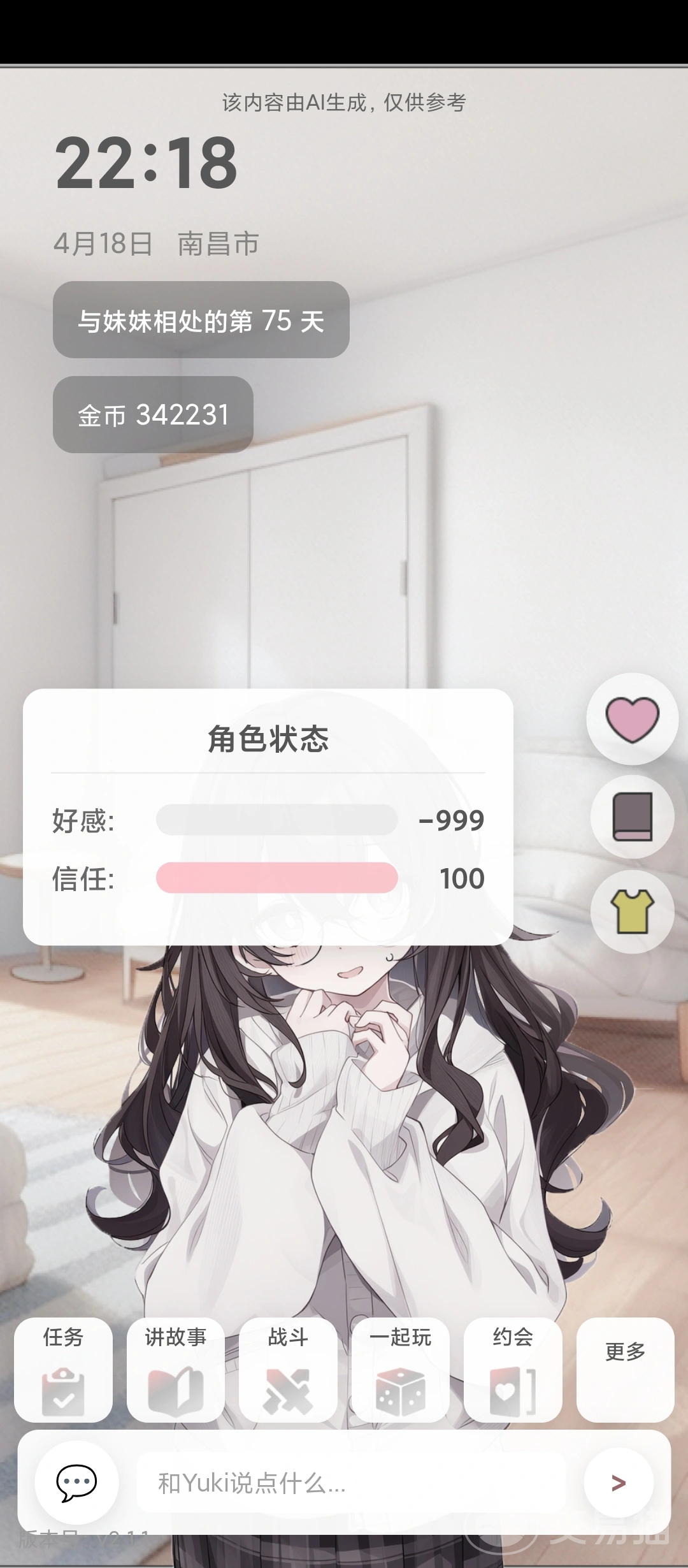 《妹居物语》是一款以亲情羁绊为内核的沉浸式恋爱模拟角色扮演游戏。在游戏中,玩家可通过丰富互动推动与妹妹之间的情感发展,其中“智能换装系统”作为核心玩法之一,依托大模型技术实现动态服饰匹配,让角色穿搭随场景、对话与情绪自然变化,大幅提升代入感与个性化体验。