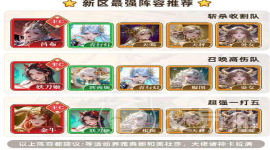实战验证有效的经典阵容已逐步成型。控制流代表“无限冰冻流”推荐雅典娜、魔蝎女神、处女女神组合,三者技能联动可实现高频控场,大幅压缩敌方操作空间;爆发流代表“吕布国家队”则由吕布、张角、华佗构成,配合圣兽赋能后,既能保障前排承伤能力,亦可激活后排极限输出潜力,攻守平衡度优异。