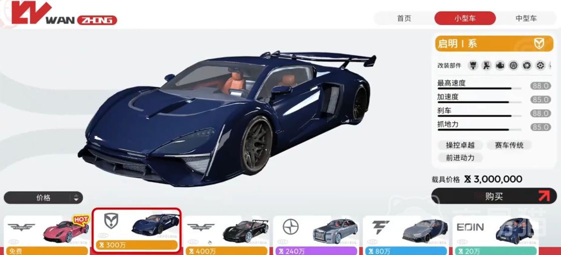 随着净资产持续提升,玩家将逐步开放赛车俱乐部等高阶产业模块。首测已实装竞速玩法,支持购置多款性能分级跑车——车辆售价直接关联引擎参数、加速响应与弯道稳定性,是参与正式赛事的核心竞争要素。