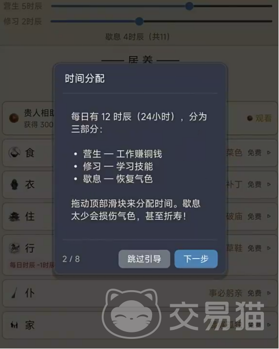 系统设计强调“选择即历史”:屏幕底部常驻交互栏涵盖居养、营生、求学、结交、休憩等核心行为,每次点击都牵动角色状态变化与后续事件概率。例如“居养”选项中需权衡食宿开销与安全风险,“陈旧”类事件则可能触发古籍修复、老宅翻修等特色玩法,潜移默化传递明代物质文化细节。