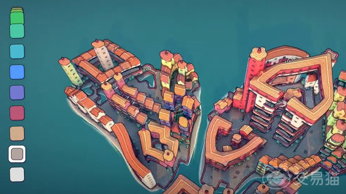 区别于传统模拟建造类游戏,《城镇叠叠乐》摒弃了资源采集、生产链条、人口管理等常规机制,不设任务引导或进度限制,玩家可完全依照个人审美与空间构思进行创作。每栋建筑均支持多套预设配色方案,选定后即可实时应用至新建结构;已完成建筑亦支持无损换色——仅需选择新颜色并对目标区域执行覆盖操作,即可完成外观更新。建筑形态还会随高度变化、相邻间距、底部承托结构等物理关联要素动态呈现差异,有效避免布局重复感,提升整体城镇的视觉丰富度与个性表达力。