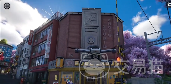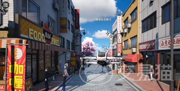 第一阶段拍摄需站在照相馆正门外侧,开启摄影模式并部署无人机,调整视角使其完整覆盖门店正立面——门楣、招牌及门框须全部入镜。第二阶段目标位于照相馆右侧沿街建筑,出门后沿右手边道路直行约三十步即可抵达,切换摄影模式后对准该建筑外立面完成取景。第三阶段目标仍从照相馆出发,沿相同路线前行,在街角处可见一座风格化石雕,其基座旁站立两名NPC,其中一名正手持传单发放,此即指定拍摄对象,对焦锁定后即可提交。