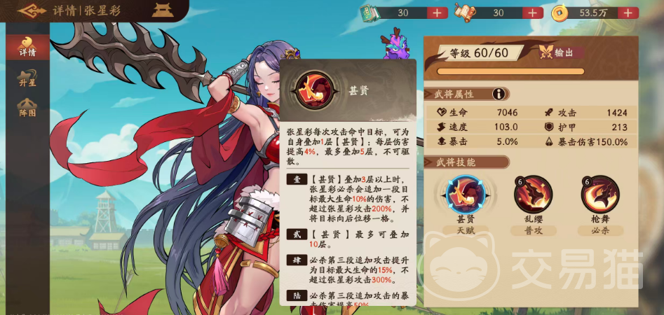 在《三国杀》武将觉醒玩法中,张星彩作为无双品质武将,凭借其高爆发、强连击与灵活位移机制,在近战输出体系中占据重要地位。玩家若获得该武将,需重点关注其命中率成长路径——命中属性的持续强化,是解锁她全部战斗潜力的关键前提。