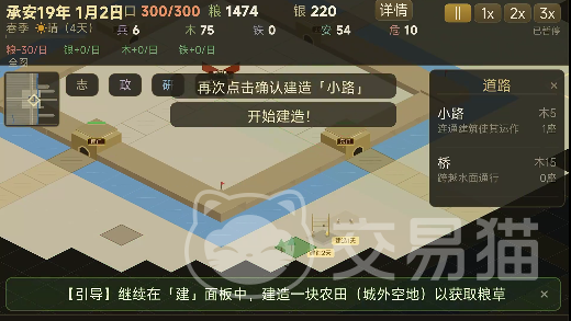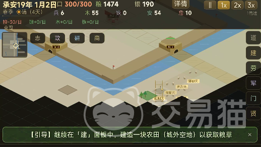 在建设层面,玩家需依据地理格局科学布局:民居与商铺宜集中于城内主街提升人气,农田、桑园、渔塘等生产设施则优先布设于城郊空地,兼顾运输效率与土地承载力。所有建筑均可随时拆除重建,操作响应灵敏,界面简洁直观,新手亦能快速上手。